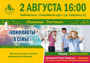 2 августа в библиотеке «Семейный круг» г. Прокопьевска состоится семейная гостиная на тему «Конфликты в семье». Встречу проведёт настоятель храма святых благоверных князей Петра и Февронии Муромских города Кемерово протоиерей Роман Хлипитько.